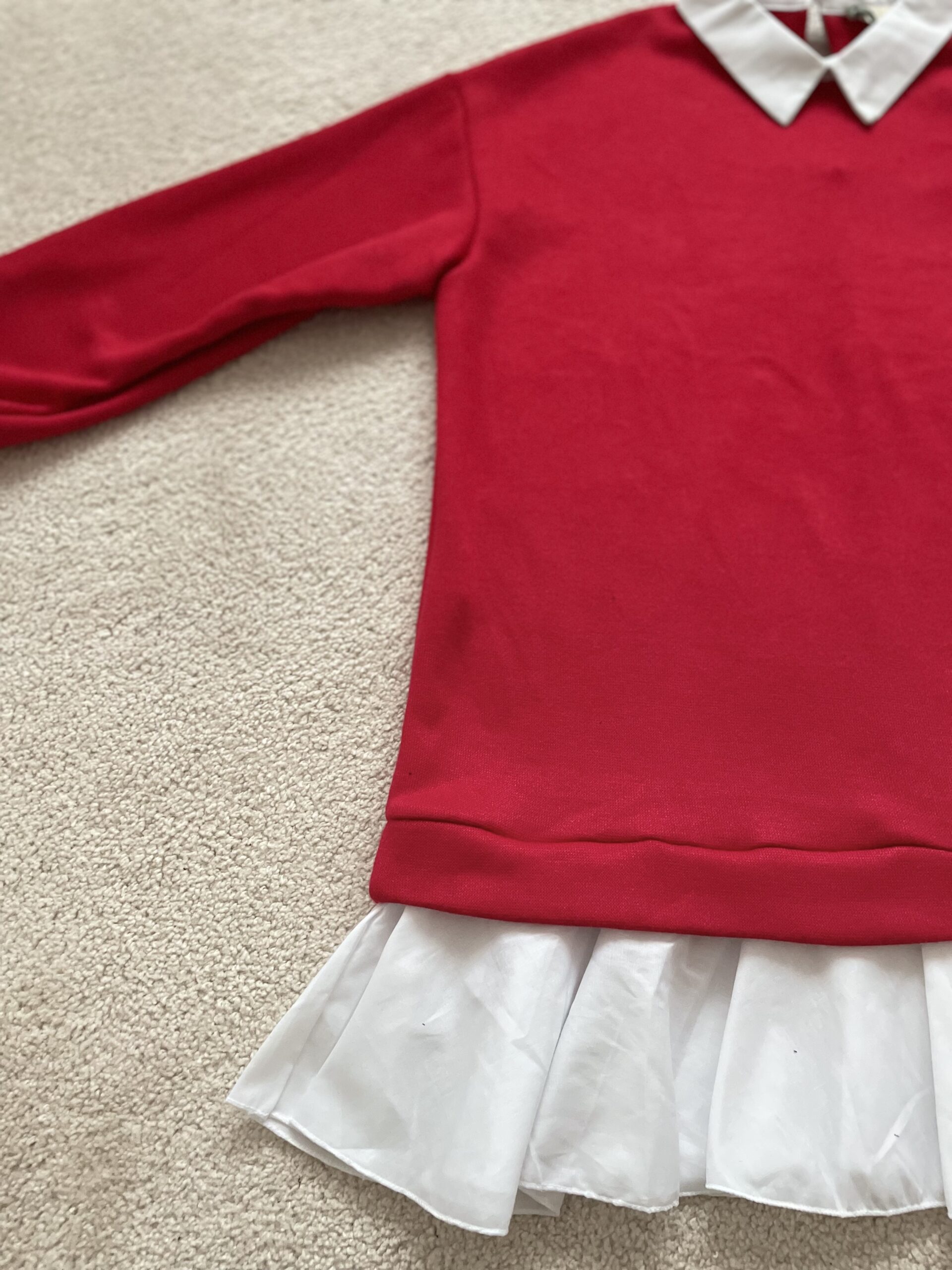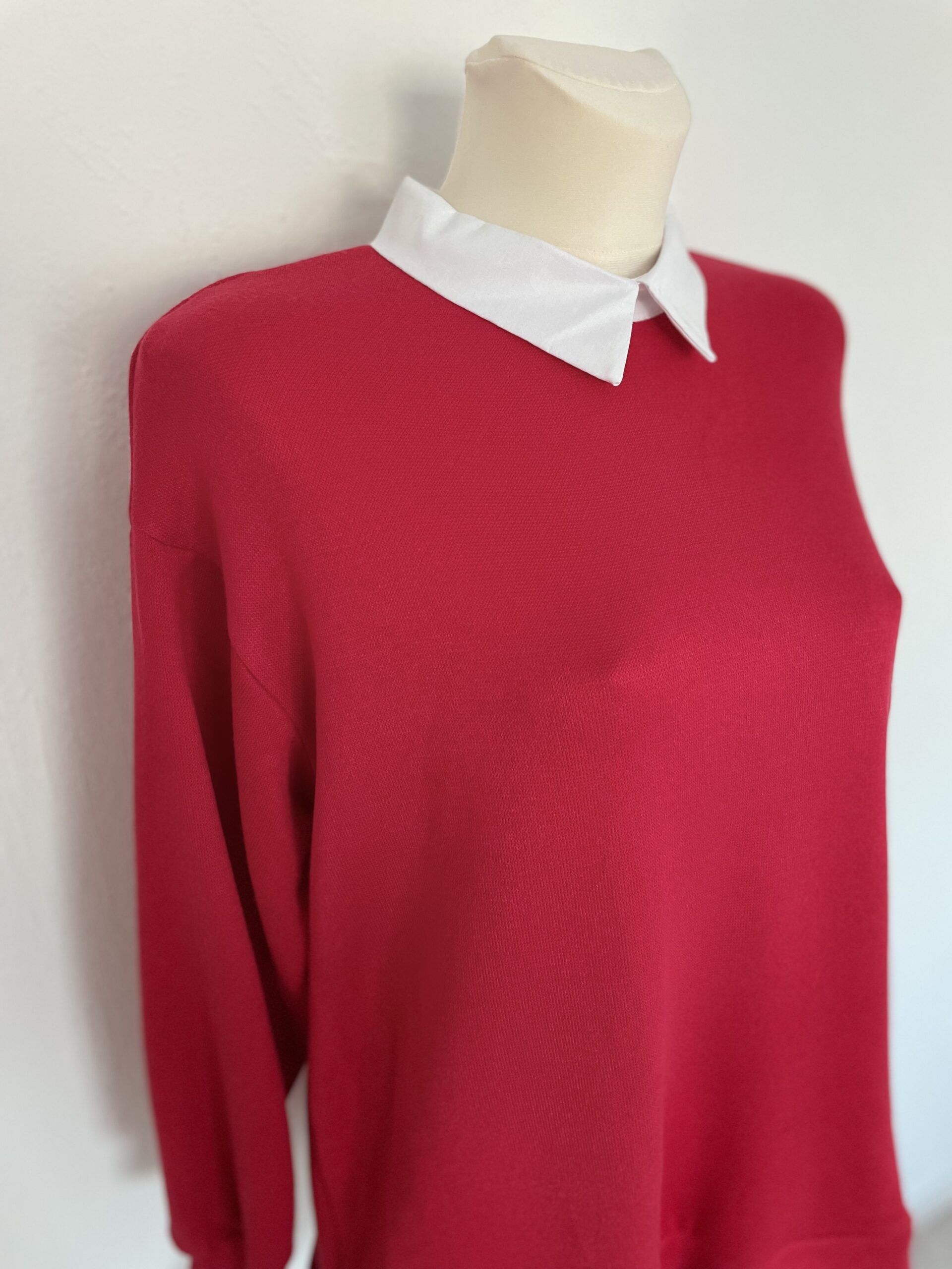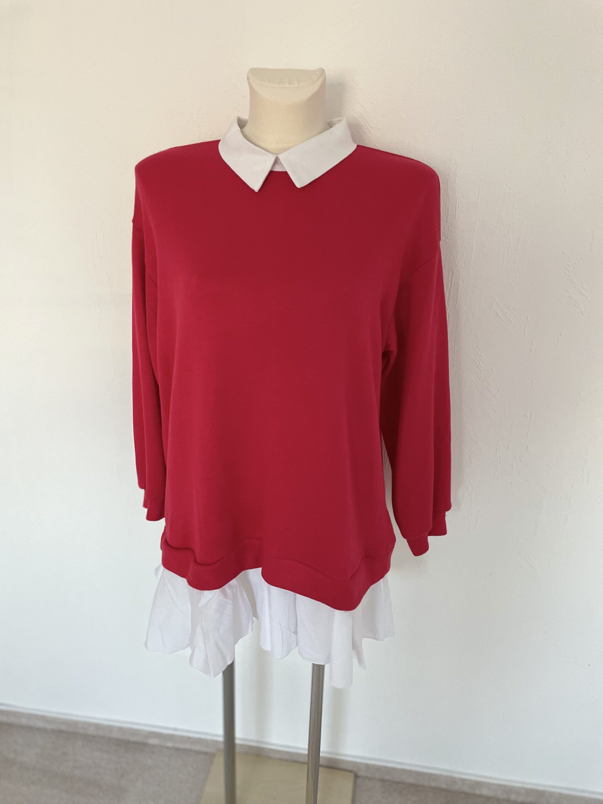 Különleges pulóver ruha, nyakán ing gallérral, alján ingbetéttel. S- L méretig ajánlom.