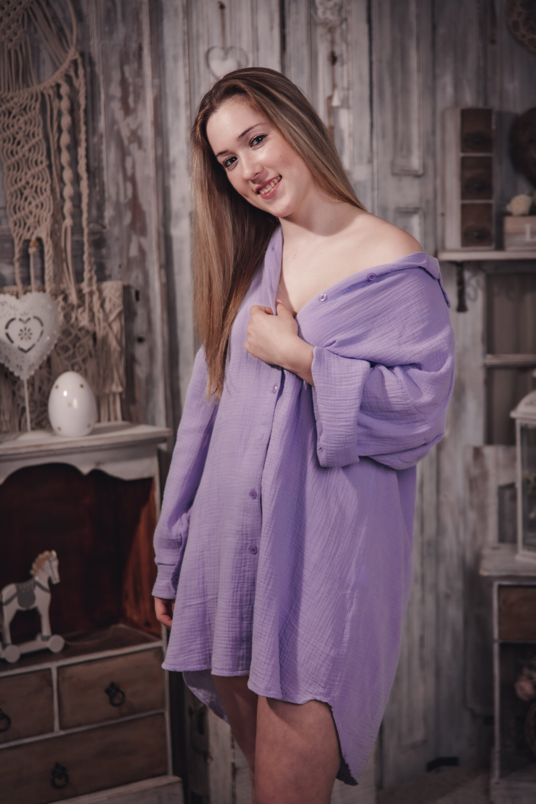 Laza fazonú méret nélküli ing, mely többféleképpen kombinálható. S