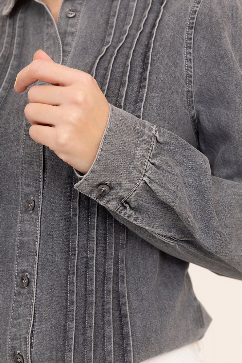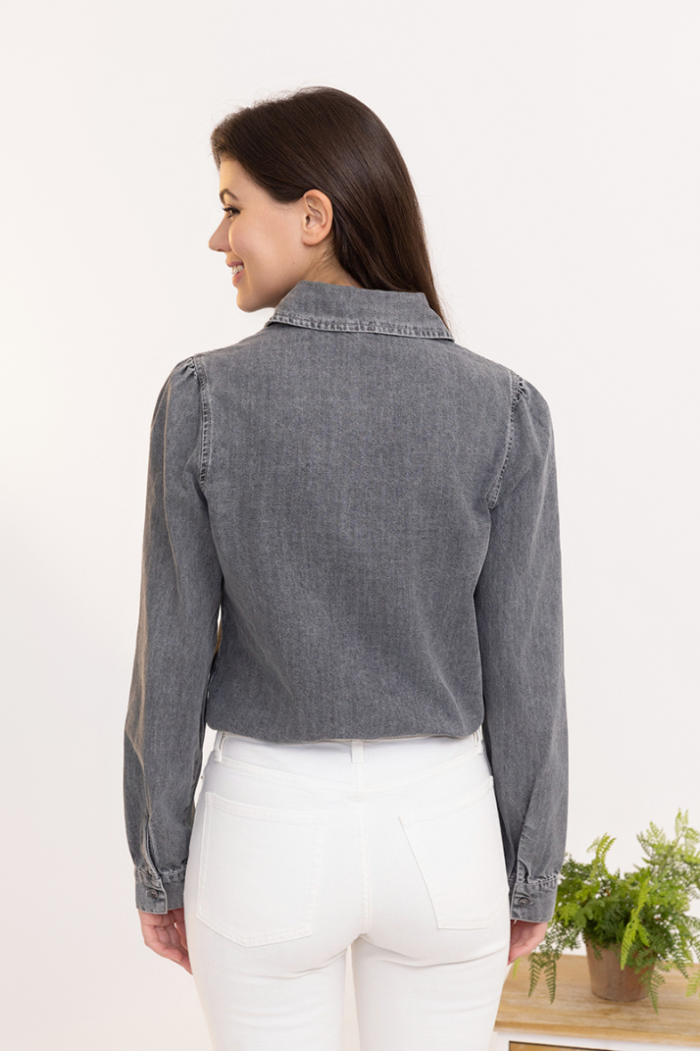 Szürke farmering fodorral díszitve. Vékonyabb, könnyű anyag.